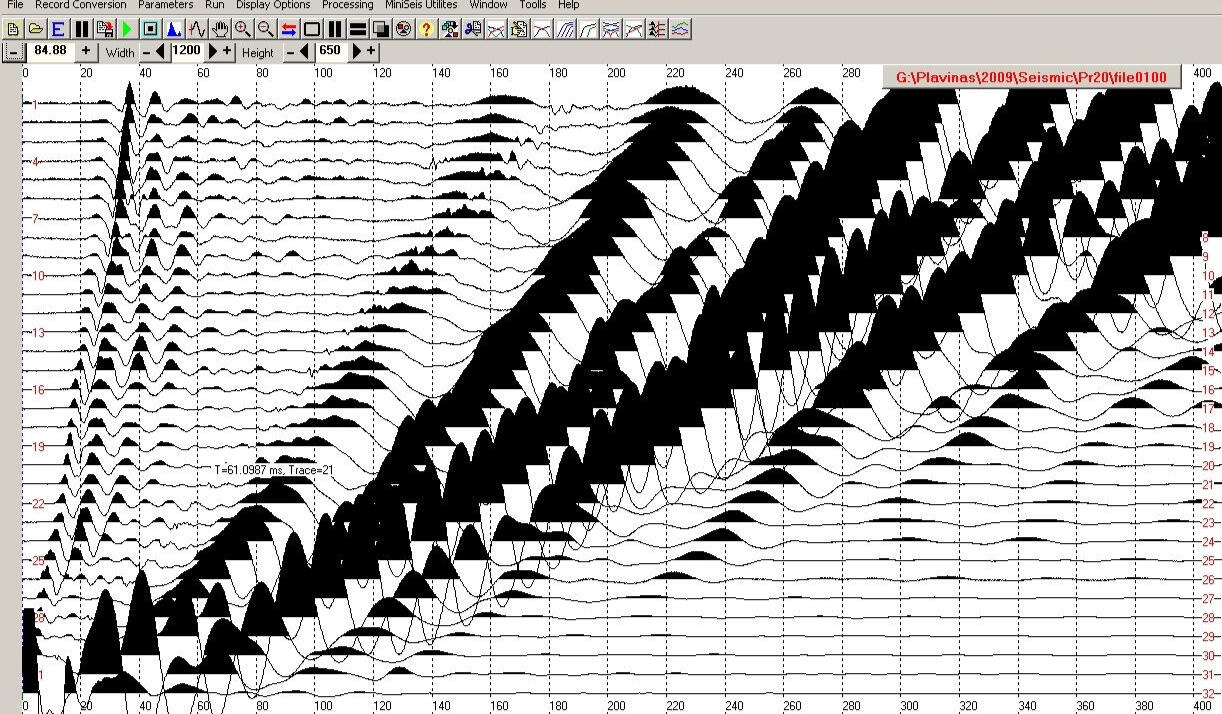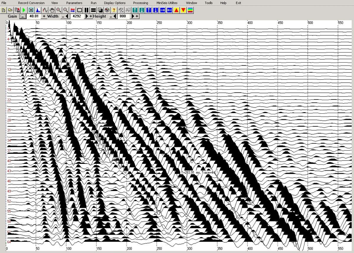 An example of recording reflected waves to a depth of about 400 m