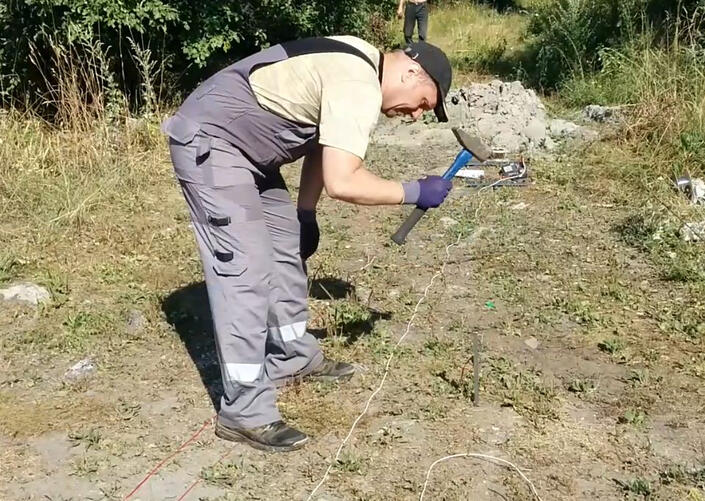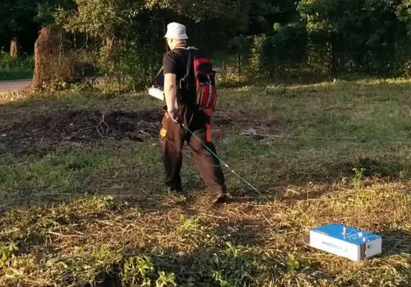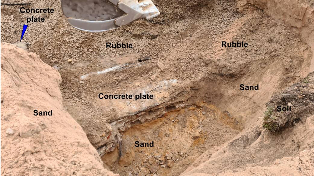 An example of localization of the remains of an old foundation at the construction site of a sports facility.