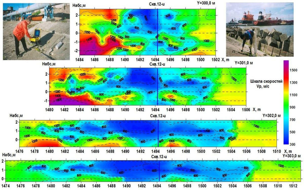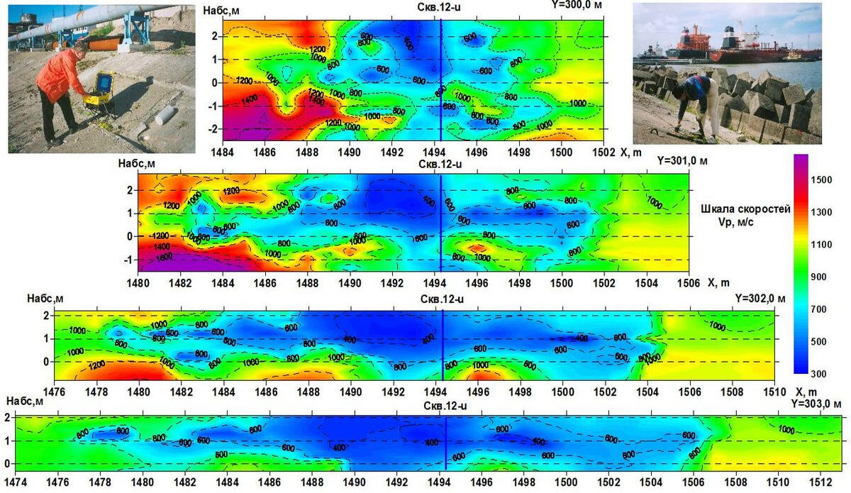 2003-2004 г. SIA "Iženieri" (г.Рига) Инженерно-геофизические работы по изучению физических свойств грунтового массива берегового склона Вентспилсской нефтегавани методами приповерхностной пространственной сейсмики