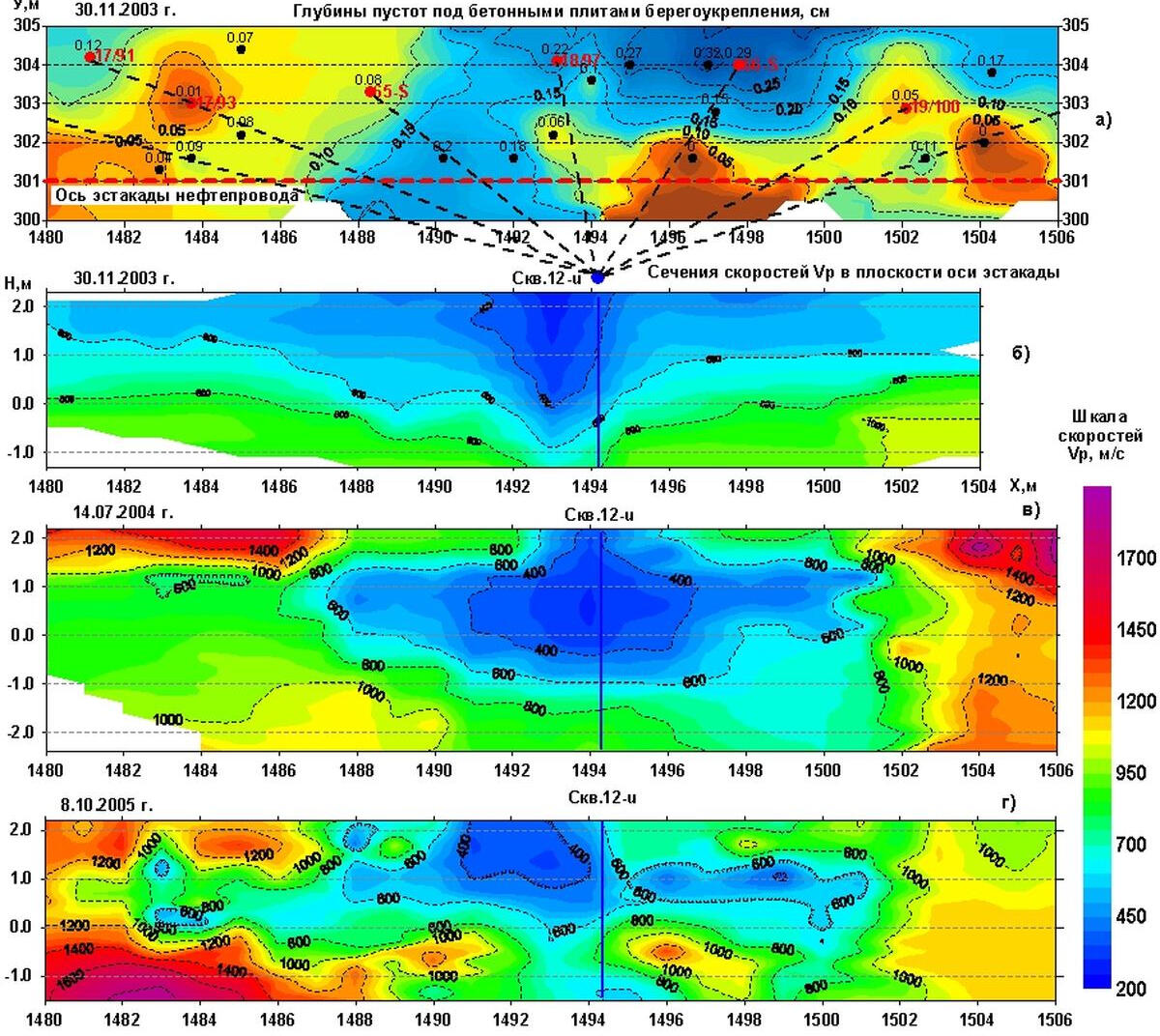 2005 г. SIA "Iženieri" (г.Рига) Мониторинговые инженерно-геофизические исследования по оценке состояния грунтового массива берегового склона Вентспилсской нефтегавани после проведения ремонтно-профилактических работ