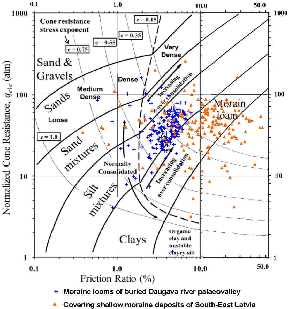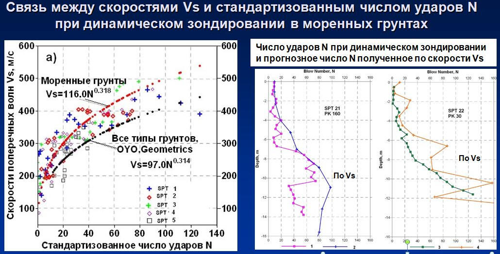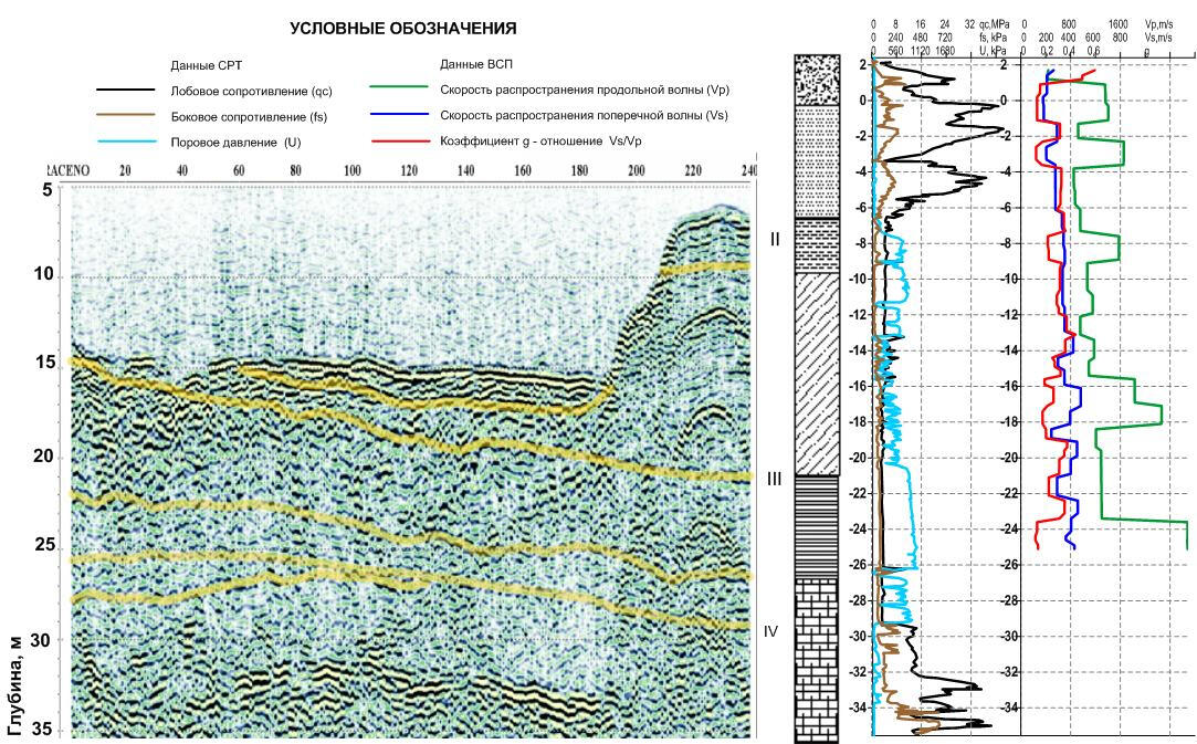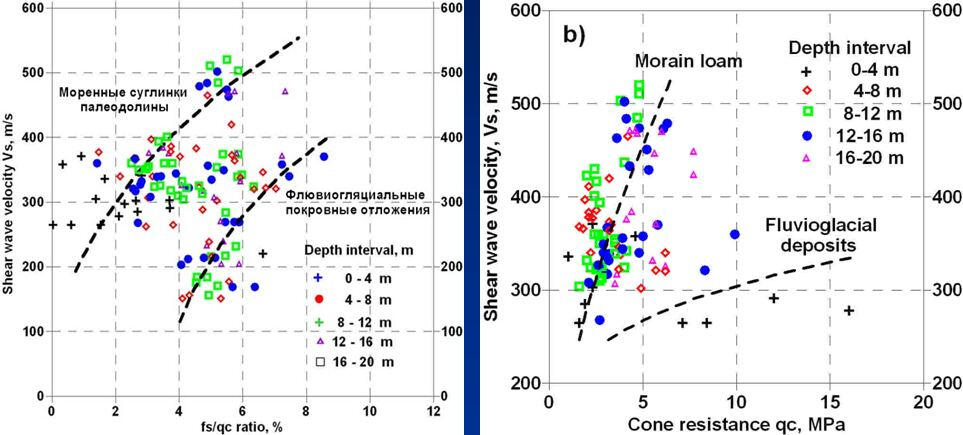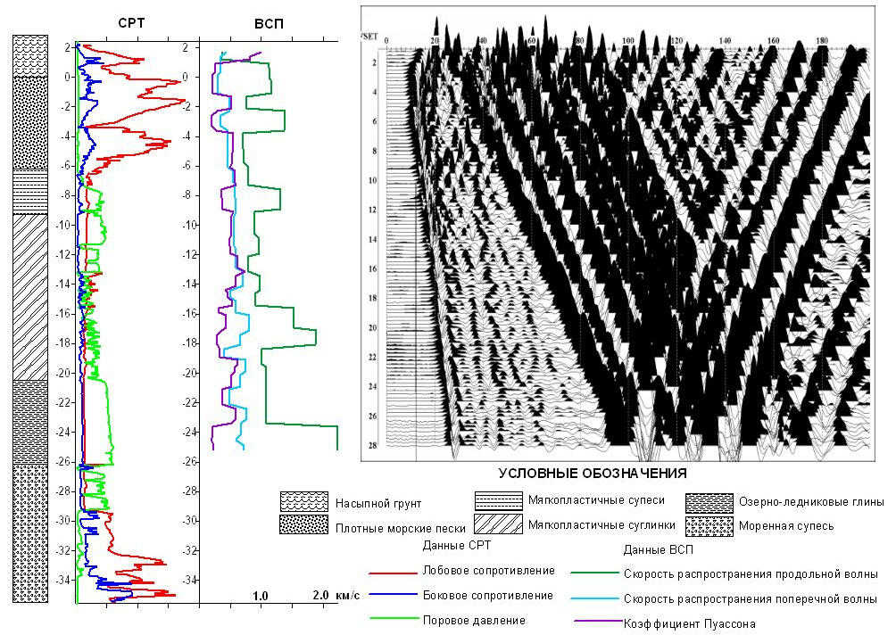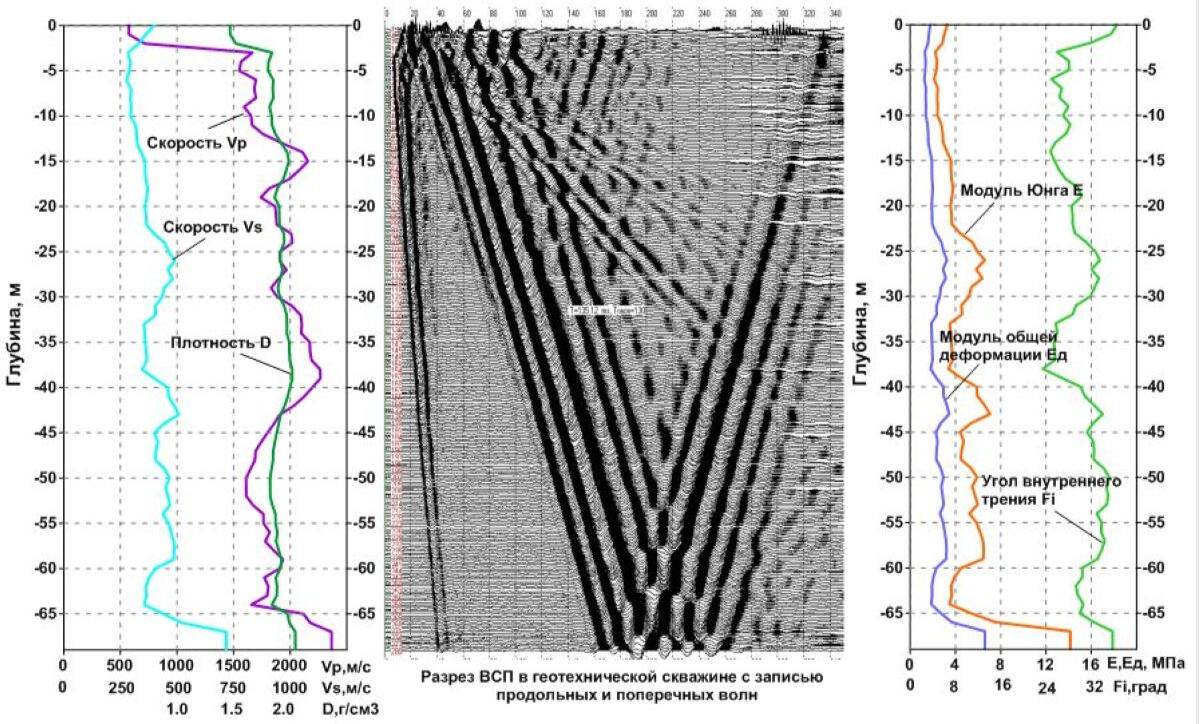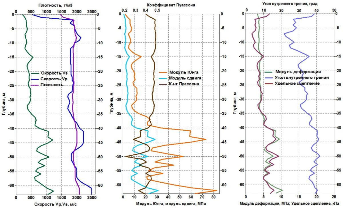 Graphs of physical and mechanical parameters of soils obtained on the basis of VSP