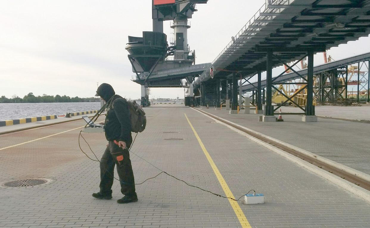 2015, AS "LNK Industries" (Riga) GPR investigation of the foundation soil of paved surface construction of the pier of Riga Bulk Terminal (Kundzinsala) of the free port of Riga