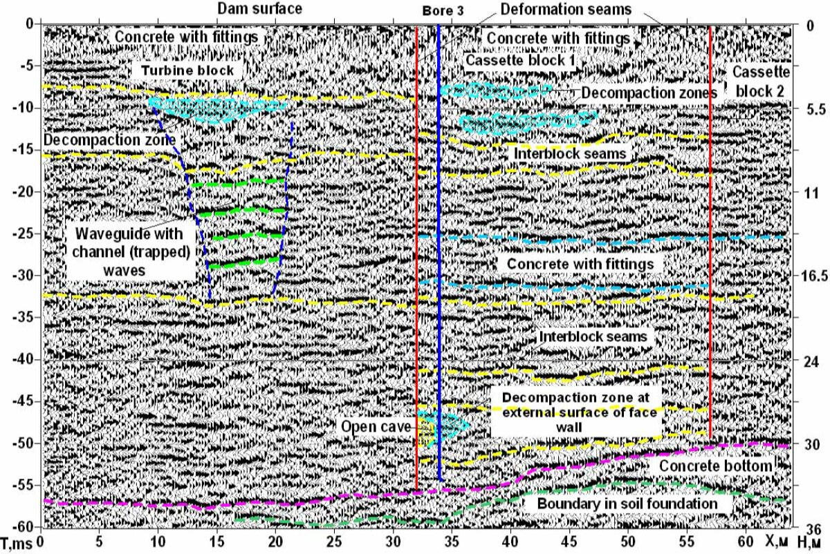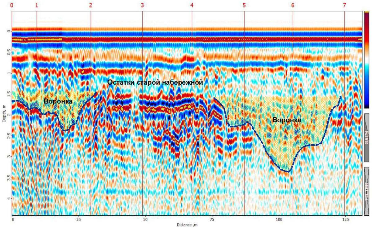 GPR sounding of the ground foundation of passenger quay embankment