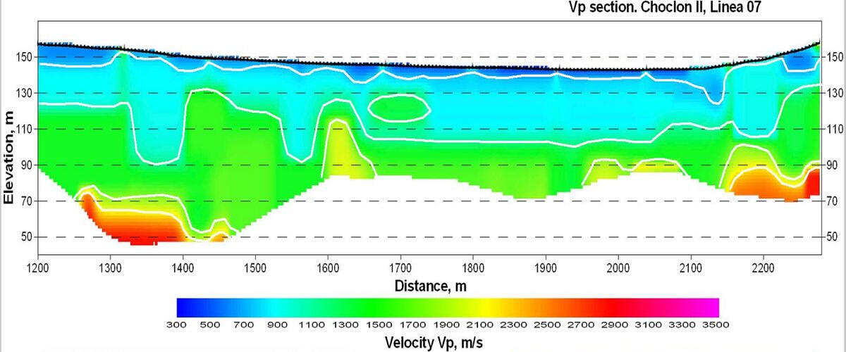 2008 GEOEXPLOR S. R. L (Peru) Acquisition of equipment, software development, works by method of refracted waves, the processing and interpretation of seismic data acquired on the dam sump flotation waste Choclon-2, (the province Marcona, department of Ica) and on four bridges of Shorey Road in Santiago de Chuco (Peru)