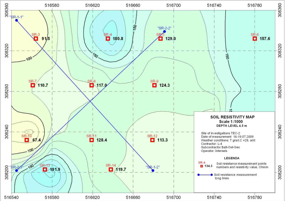 2018 г. SIA «Firma L4» (г.Рига), Определение электрического сопротивления грунтов в отдельных пунктах участка Спилве.