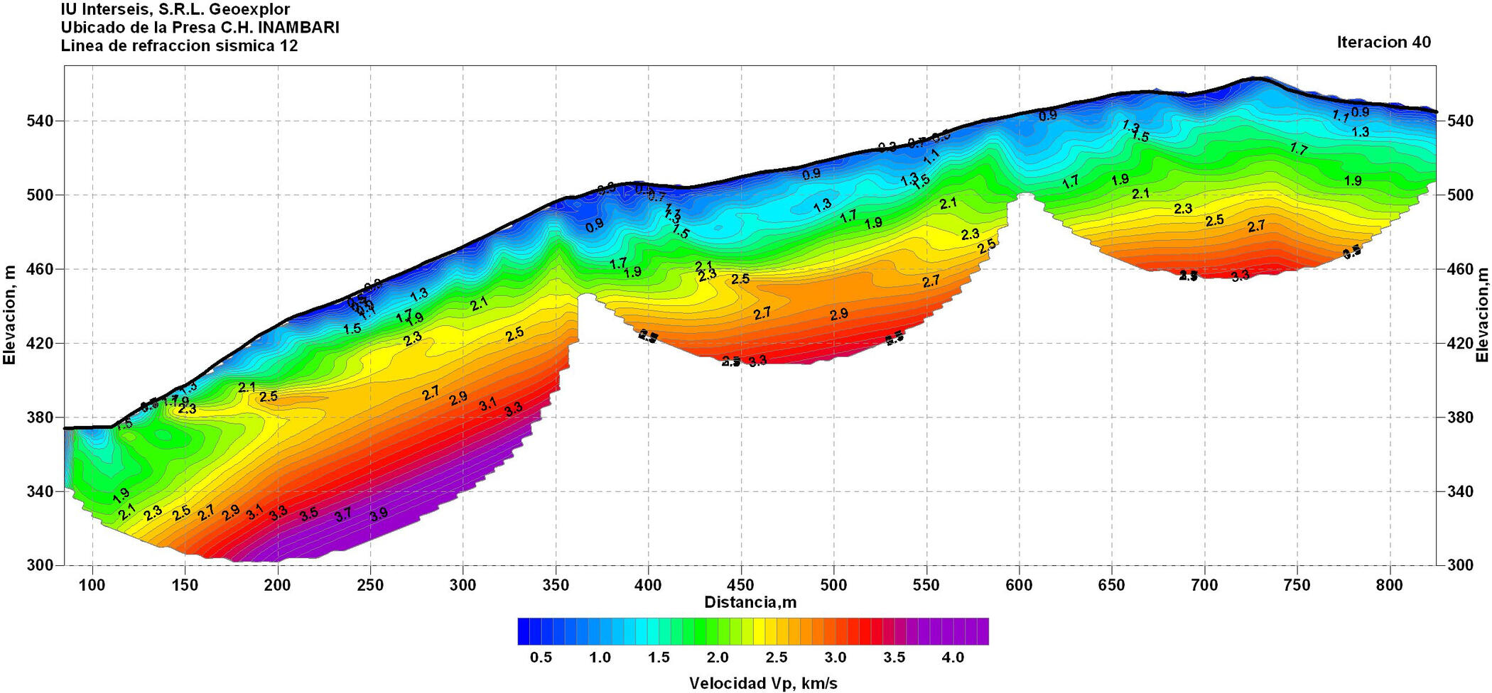 2009 г. GEOEXPLOR S.R.L (Перу) Геофизические исследования методами малоглубинной сейсморазведки на участке изысканий под строительство высотной плотины ГЭС на р.Инамбари, департаменты Cuzco, Madre de Dios и Puno (Перу), обработка и интерпретация данных.