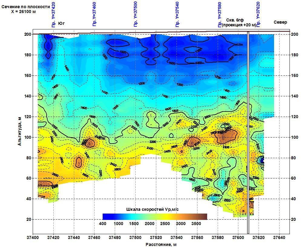 The section of Vp longitudinal waves propagation velocities
