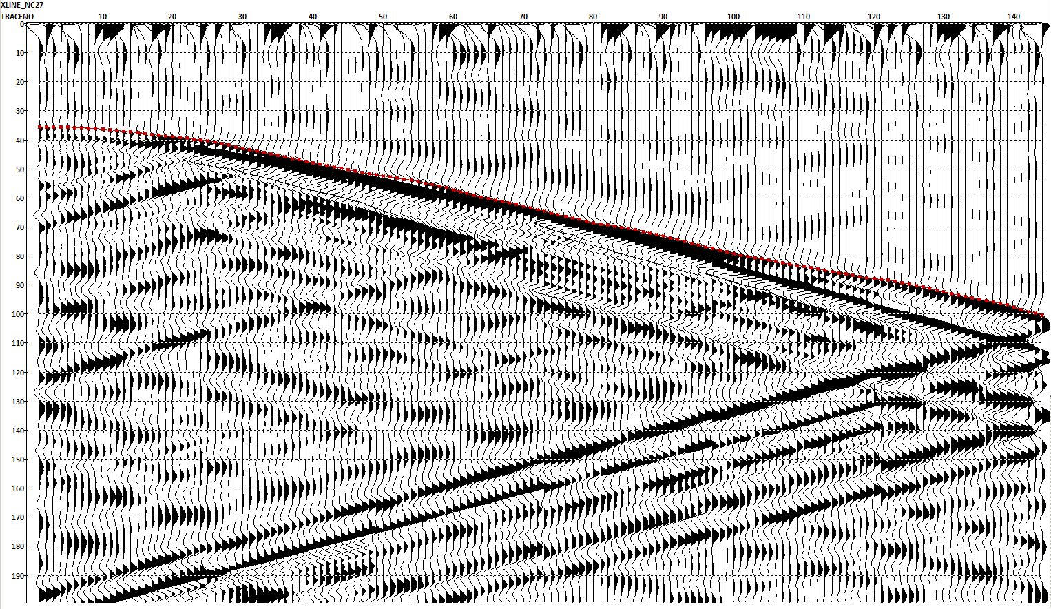 An example of a VSP recording in a 65 m deep borehole to determine static corrections for conventional CDP seismic surveys