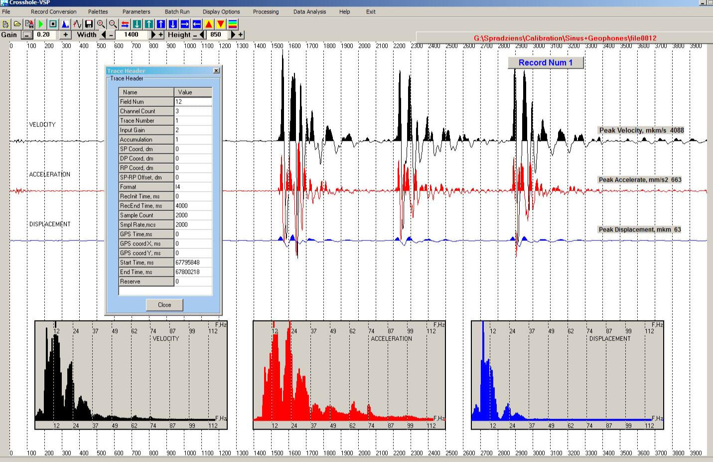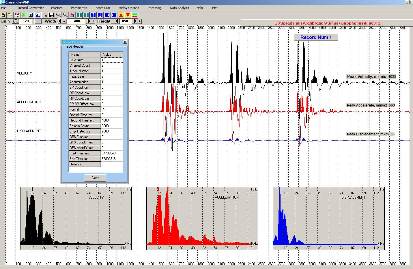 Working window of the program of trace-to-trace relationship calculation of surface wave spectra