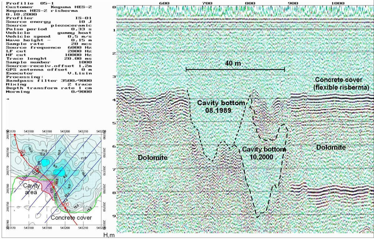 2001 г. IU "L-Konstante" (г.Рига) Мониторинговые геофизические исследования на участке ремонтно-профилактических работ в нижней части рисбермы водоотводного канала Кегумской ГЭС-2